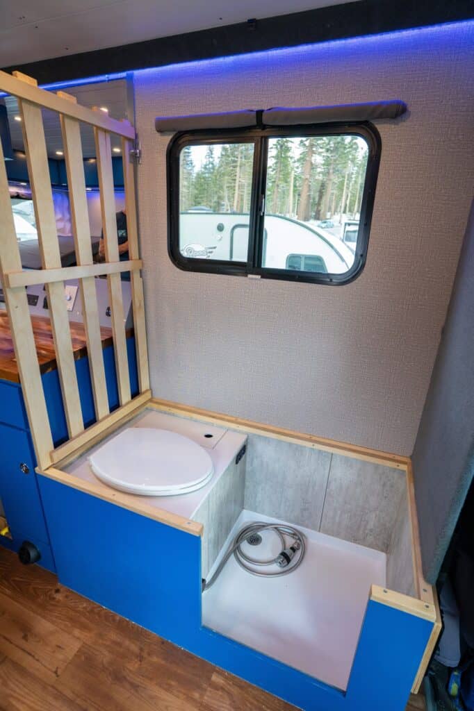 The real MVP of this build? Mitch integrated ski boot heaters directly into the shower pan. Imagine waking up at a trailhead, the outside world frozen solid, and sliding your feet into toasty, dry boots. It is the ultimate luxury for a serious rider.