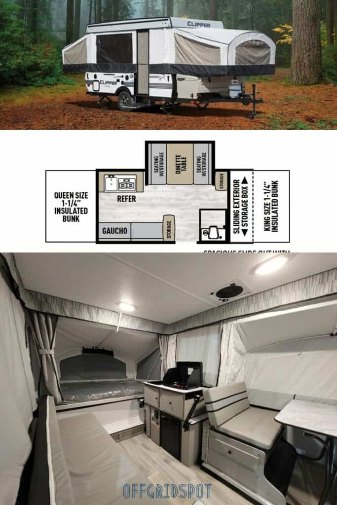 The Clipper Camping Pop-up comes with an aerodynamic profile that makes towing and set up easy. These campers have several different floor plans to choose from to suit your style.